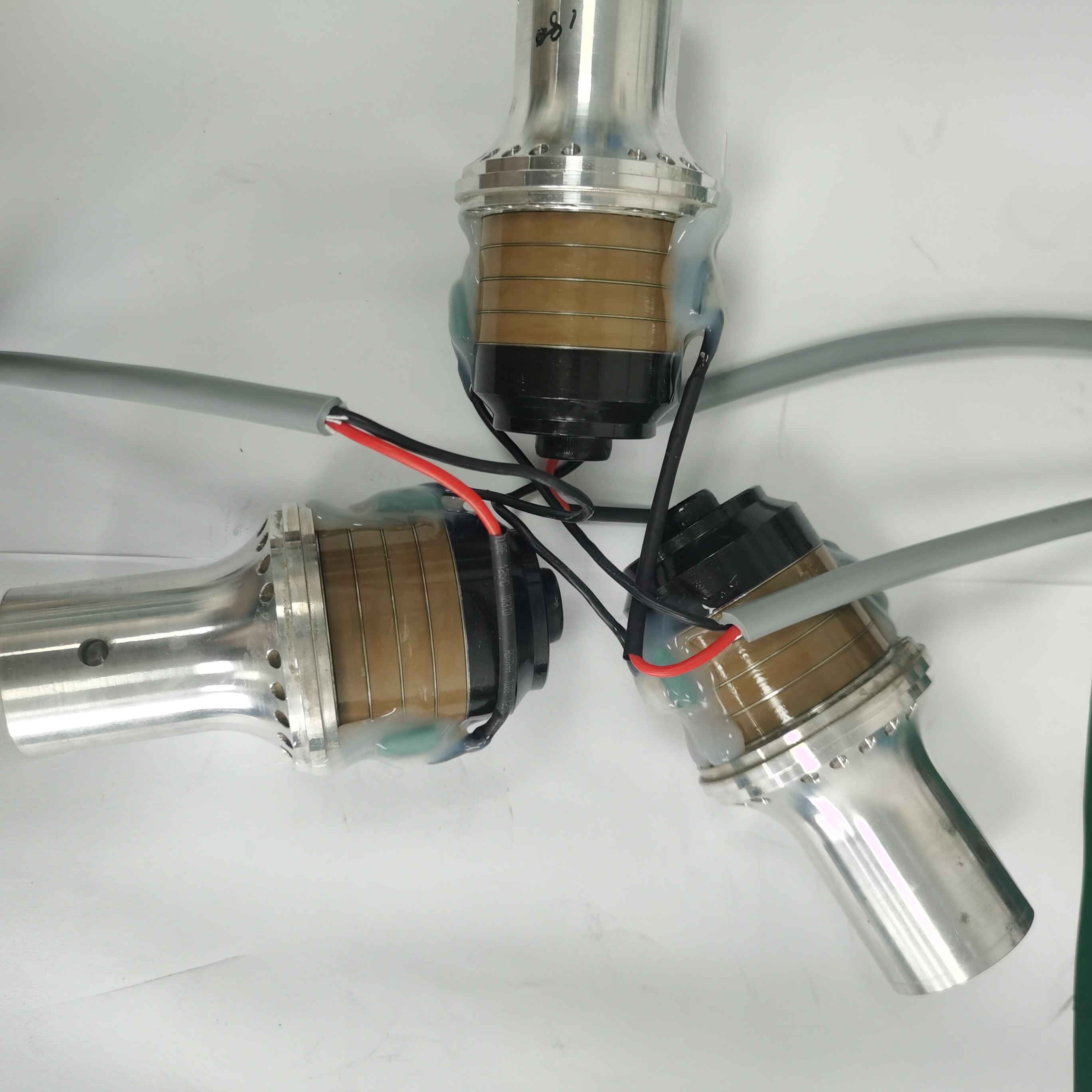 电陶瓷元件的位置之间的关系曲线,陶瓷元件的长度是固定的,而且换能器前后金属盖板的总长度也是固定不变的,当我们改变换能器后盖板的长度,就意味着电陶瓷元件的位置在发生变化,当电陶瓷元件位于换能器的中心位置时,超声波点焊机换能器振动共振频率和反共振频率达到最大值,由此同时,超声波金属点焊机换能器的有效机电耦合系数也达到最大值,当压电陶瓷元件逐渐远离换能器的中心位置时,其共振频率>反共振频率和有效机电耦合系数随之减少。因此可得出一重要的结论,即当电陶瓷元件位于换能器的中心位置,超声波换能器的振动性能达到最佳。